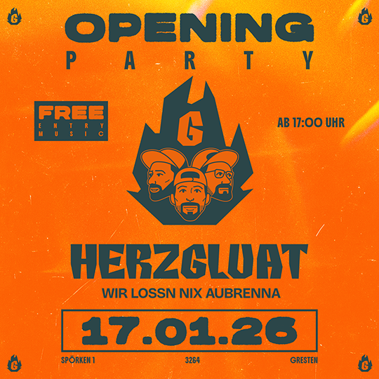 Livemusik, DJ & ein Abend voller GluatAm 17.01.2026 ist es so weit: Herzgluat Gresten öffnet offiziell seine Türen – und das feiern wir mit einer großen Opening Party mitten im…